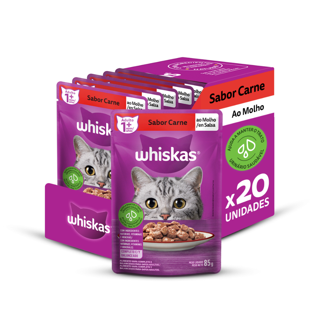 Kit com 40un Ração Úmida Whiskas Sachê Carne Gato Adulto 85g