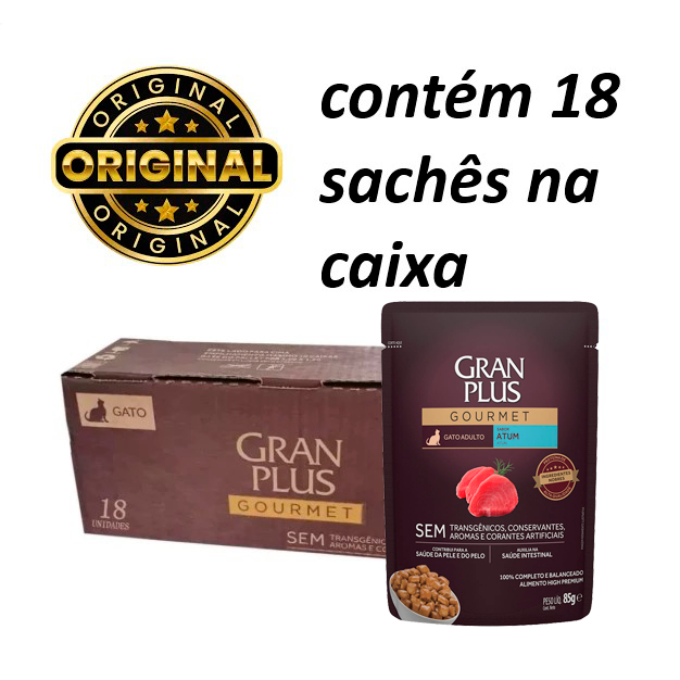 Kit 18un. Ração Úmida Sachê GranPlus Gourmet Gatos Adultos Atum 85g