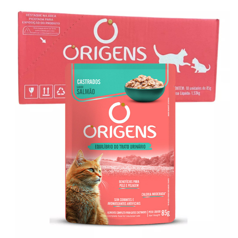Kit Sache Origens Gato Castrado Salmao Caixa c/ 18 un