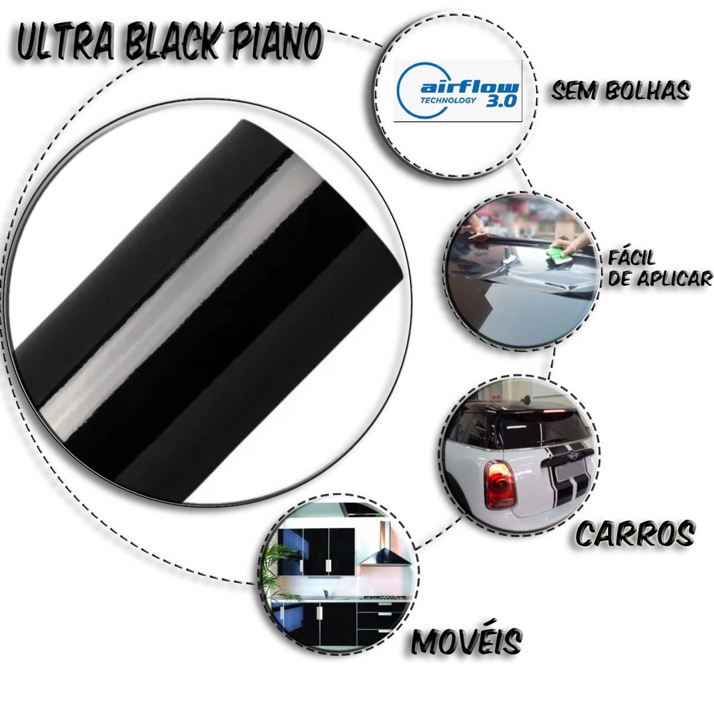 Adesivo Vinil Black Piano Envelopamento Automotivo 2m X 1,20m