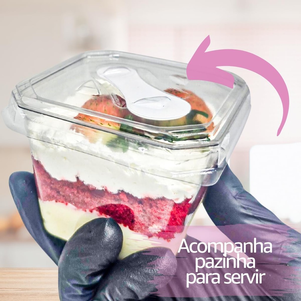 100un Pote Para Bolo De Pote Quadrado 250ml Com Mini Colher