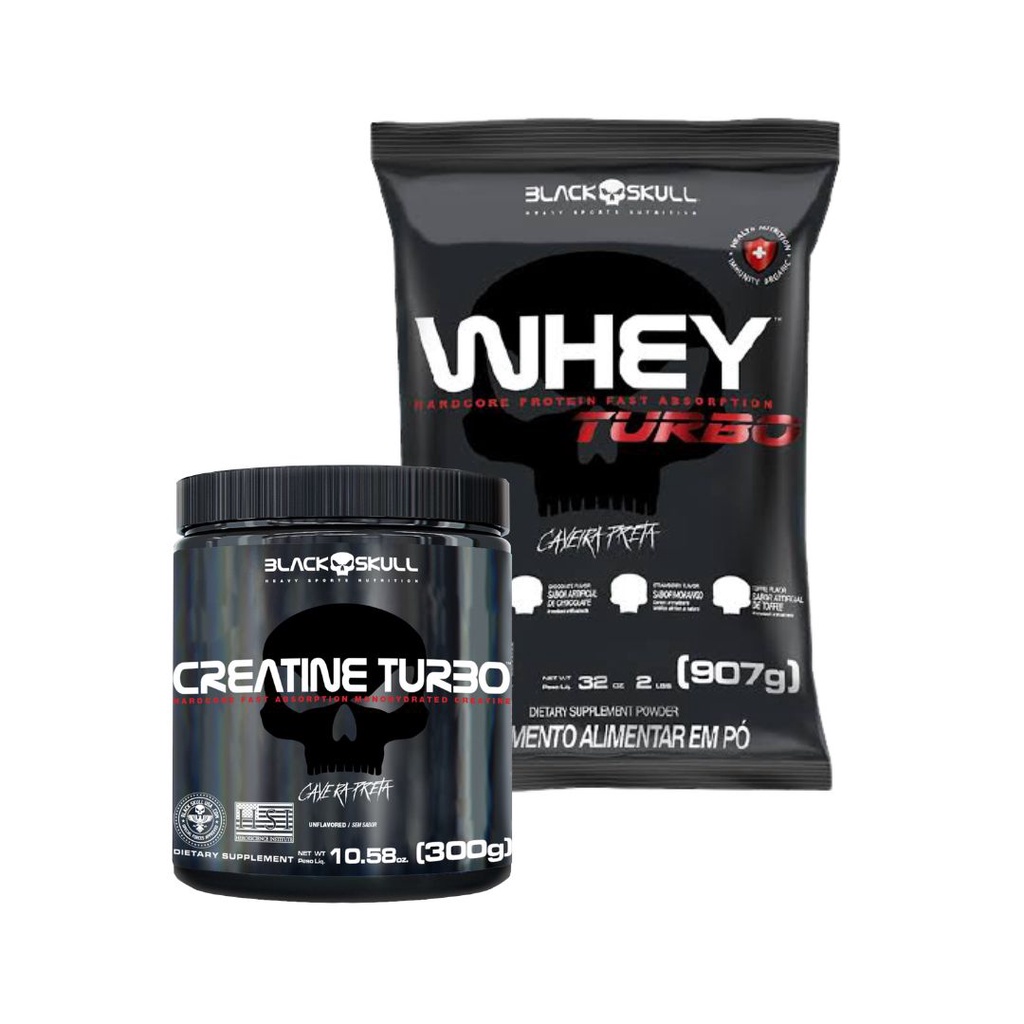 Kit 1x Whey Turbo 900g + 1x Creatina Turbo 300g - BlackSkull