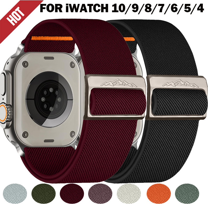 Pulseira de Nylon para Apple Watch 49mm 45mm 44mm 42mm 41mm 40mm 38mm, IWatch Serie 9 8 7 SE 6 5 4 3 2 1 SE Ultra 2 Band strap Elástica Trançada com Fivela Magnética