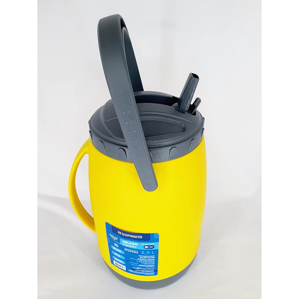 Garrafa Térmica Grande Soprano 2,5 litros praia 2022 para líquidos frios por 4 horas gelado estilo Botijão com bico isotérmico Plástico vermelho azul amarelo Refresco Suco Terere verão praia férias