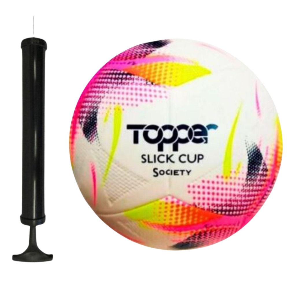 Kit Bola De Futebol Society Oficial Topper Original Com Uma Bomba De Ar Manual Kit Para Diversão