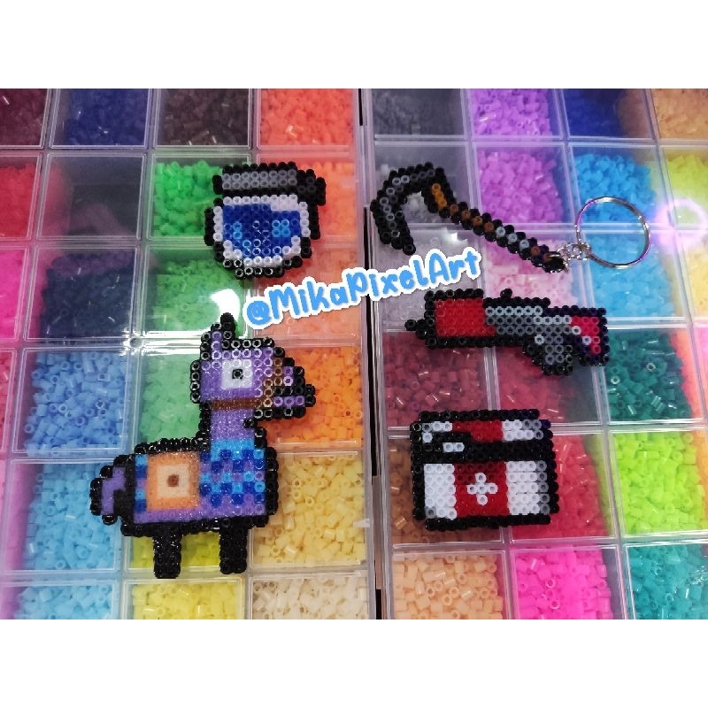 Chaveiro / Colar / ímã kit completo do Fortnite em Pixel Arte (lhama, shield, picareta, medickit e Shootgun)