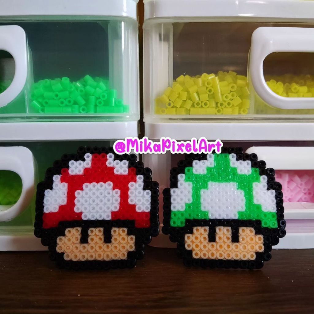 Chaveiro / Colar / ímã KIT Cogumelos do Super Mario em Pixel Art