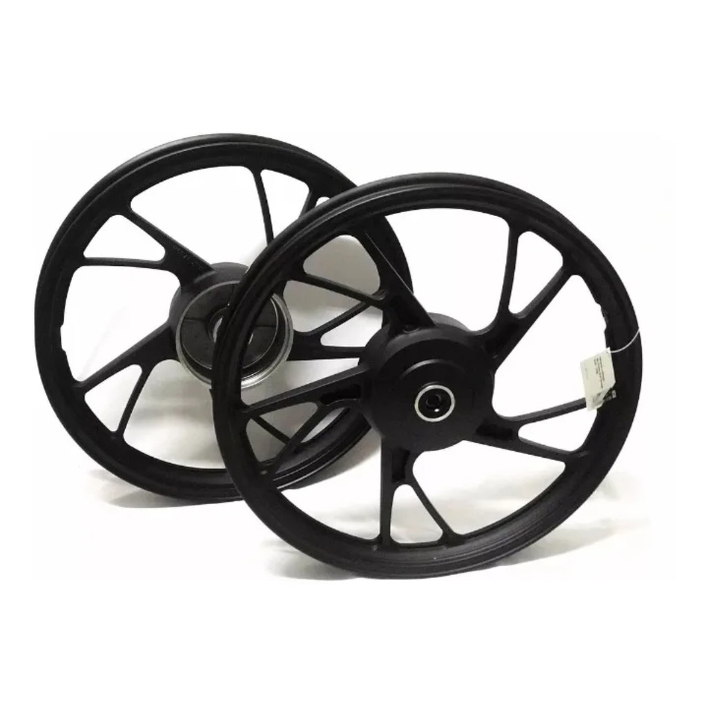 Jogo de Roda Liga Leve Fan 125 Fan 2009 a 2015 Freio a Tambor Pé de Galinha Preta Fabreck