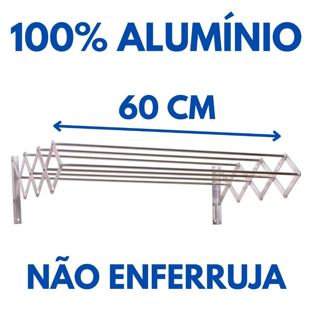 Varal Sanfonado De Parede Aluminio Dobravel 60 Cm Não Enferruja - Gibafer