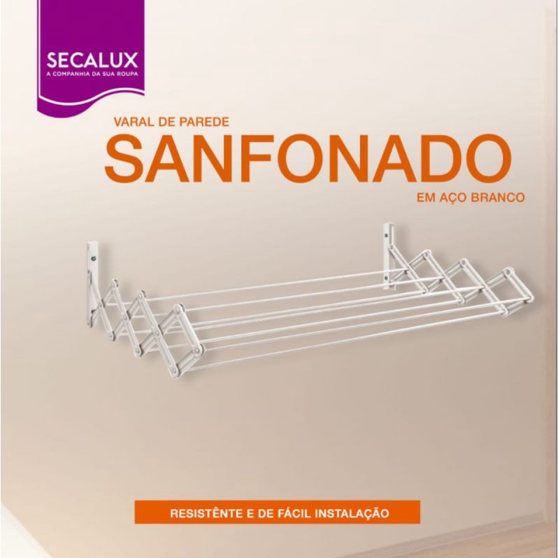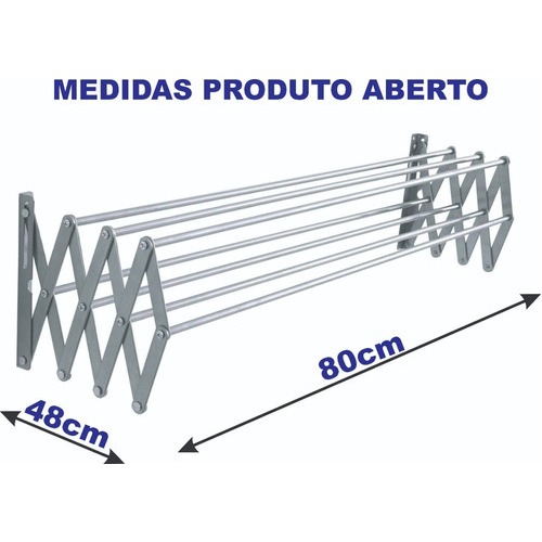 Varal De Roupas Apartamento Sanfonado Retratil Parede 80 Cm Aco Branco Reforcado Secalux