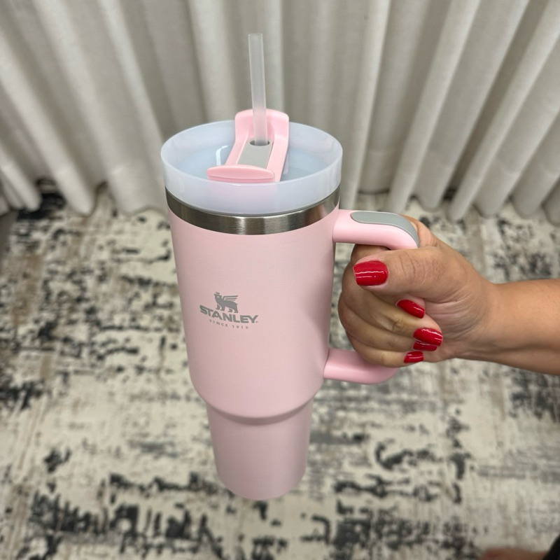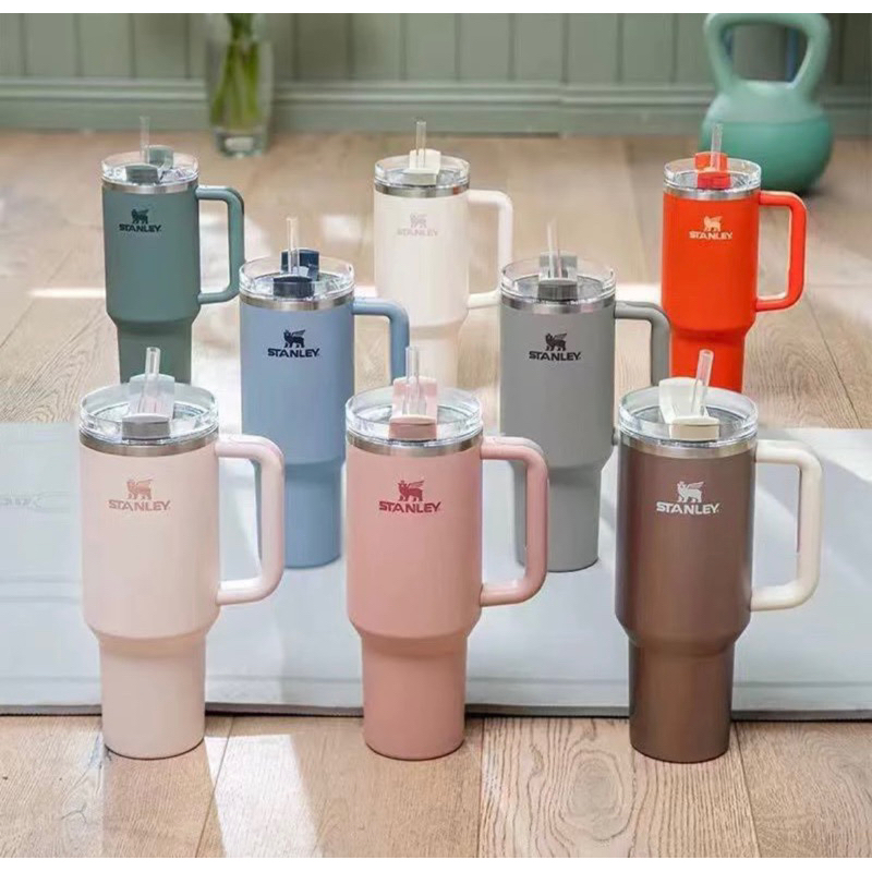 Kit 2 Garrafa 1 copo Térmica Stley Flip Straw 550ml Inox Tampa com Alça e Bico Com Canudo tipo stanley