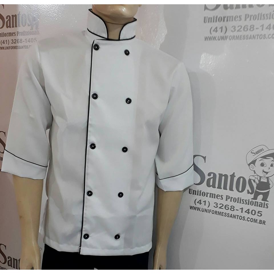 Dolma Chef De Cozinha uniforme gastronomia Branca Com Detalhes Pretos