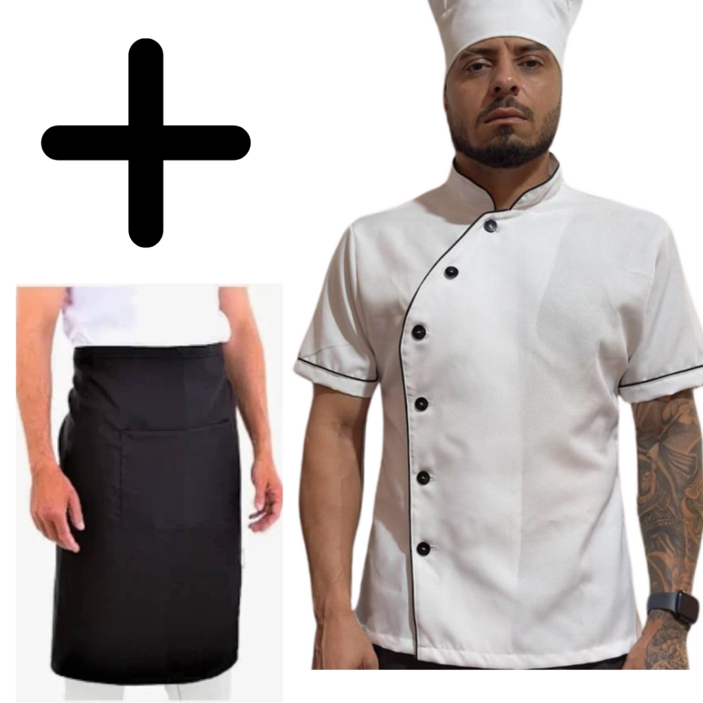 Kit Dolma + meio avental uniforme profissional chef de cozinha gastronomia