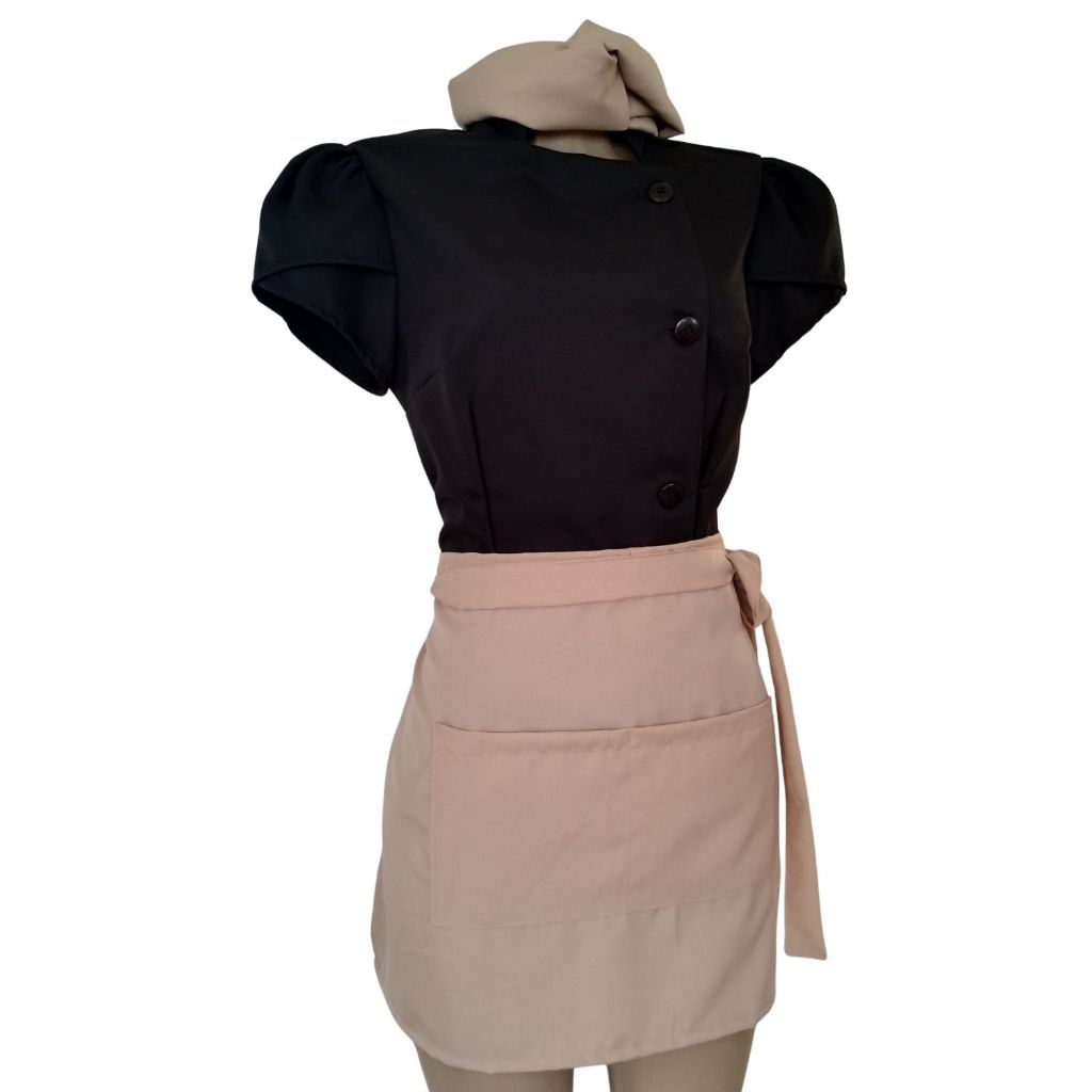Dolma Chef de Cozinha Chef Confeiteira Gabardine Manga Curta Feminina Avental Uniforme Profissional