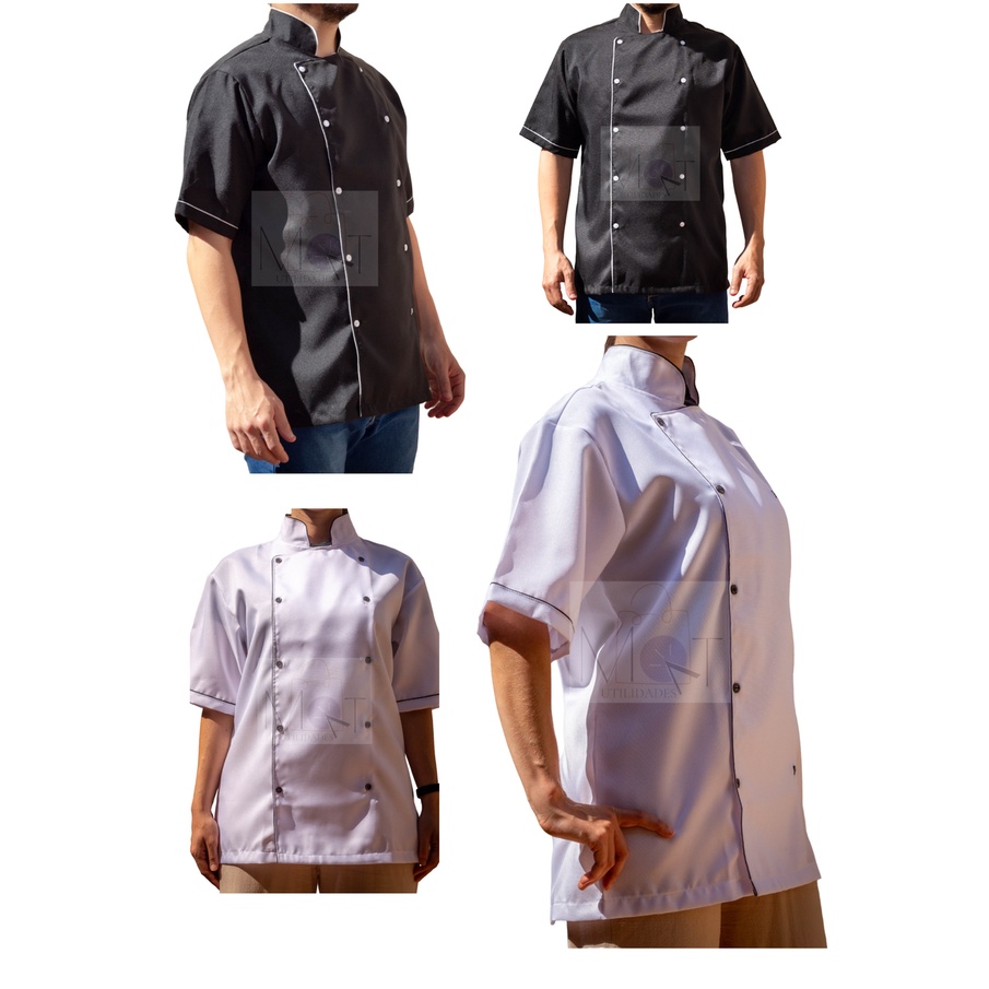 Dolma Chef de Cozinha Oxford UNISEX manga curta branco com vivo preto