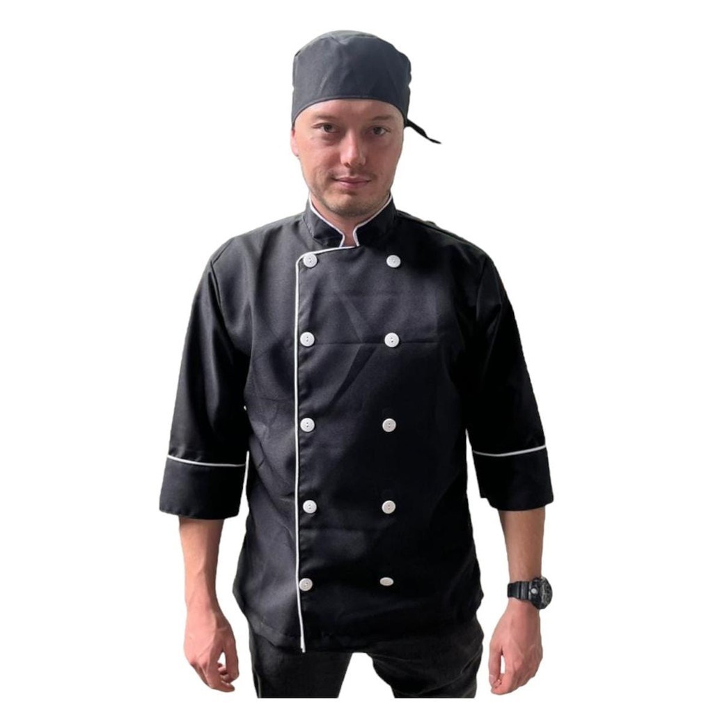 Dolma Chef De Cozinha Preta Com Detalhes Branco