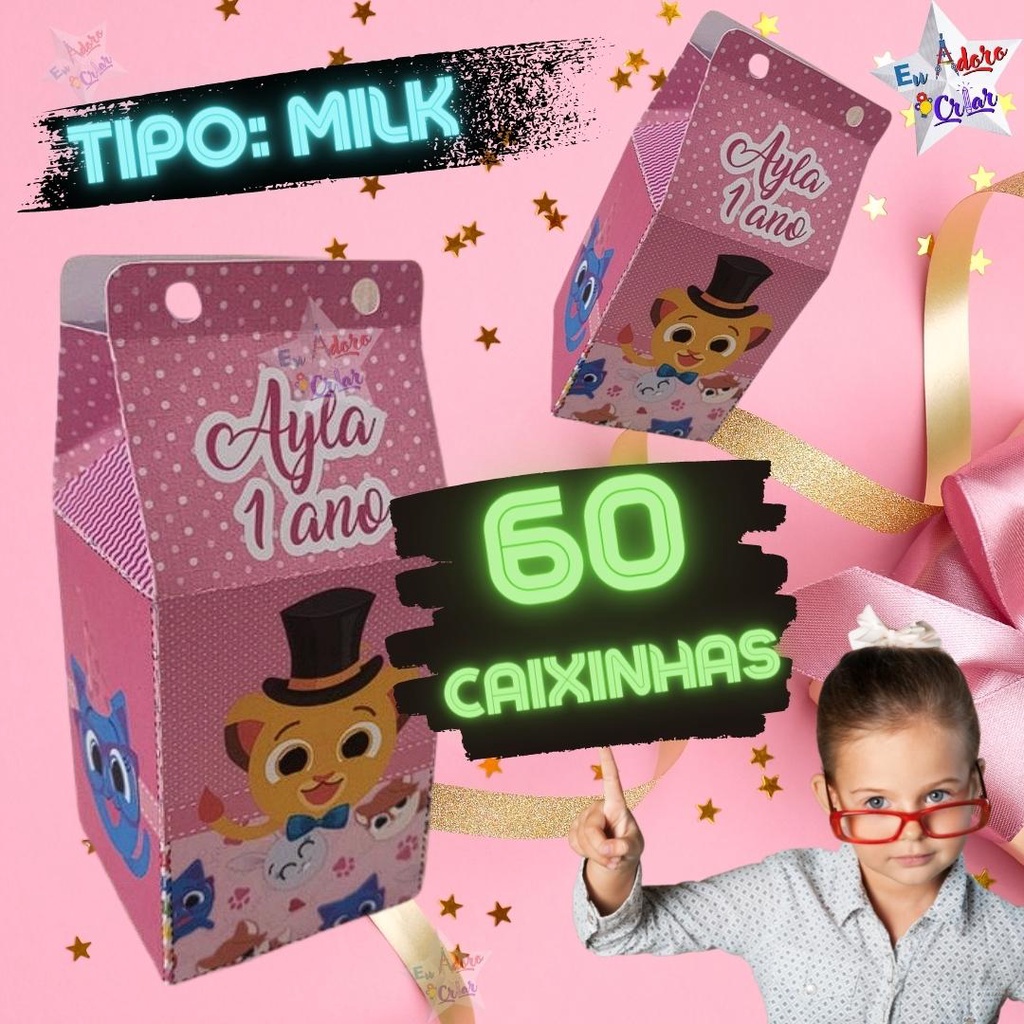kit com 60 Caixinhas MILK Personalizadas Bolofofos para a sua festa com o nome e idade do Aniversariante. Tema Bolofofo Envie Nome e Idade após a compra.