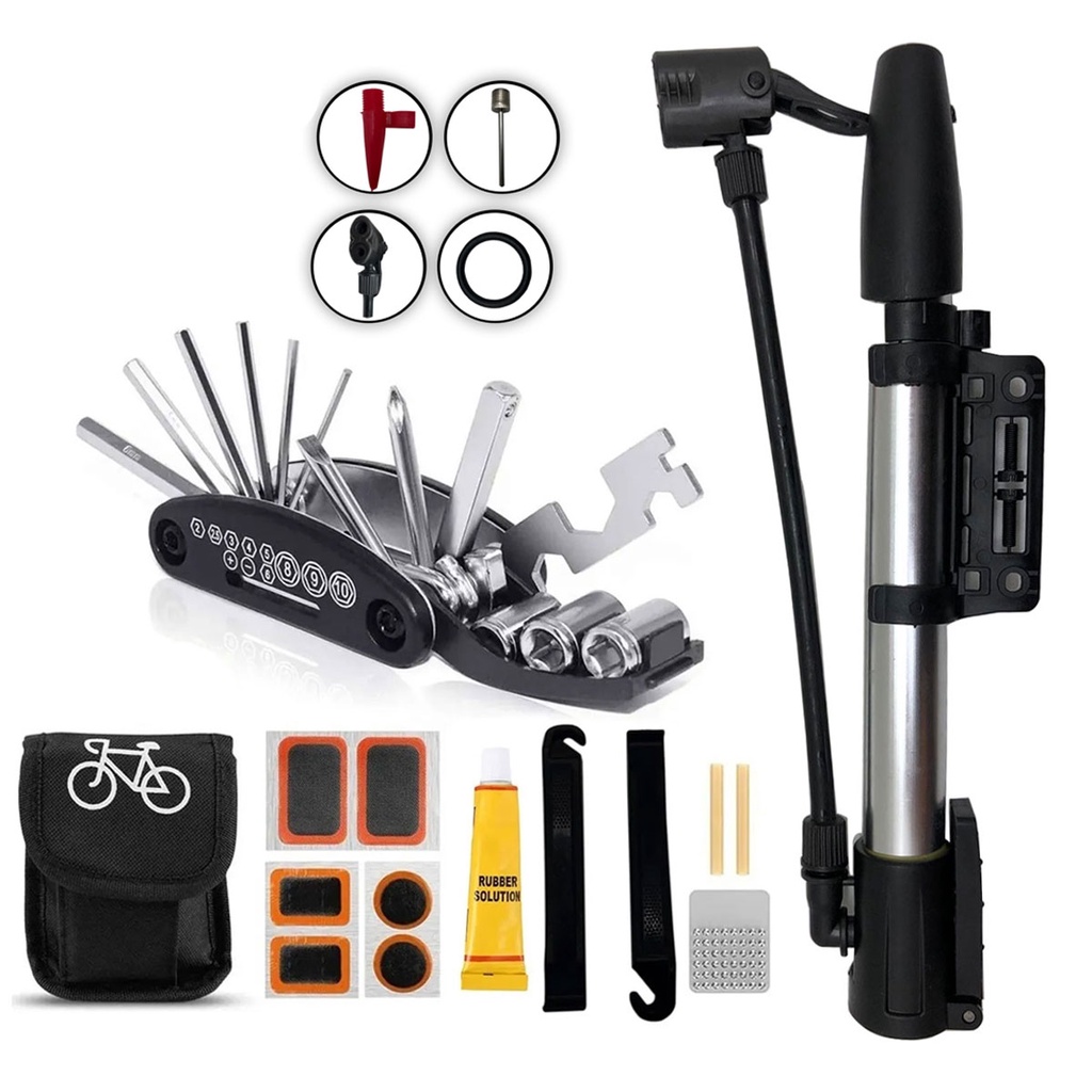Kit De Reparo E Remendo Manutenção Para Bicicletas Com Chave Allen Bomba De Ar Para Bike Bico Grosso