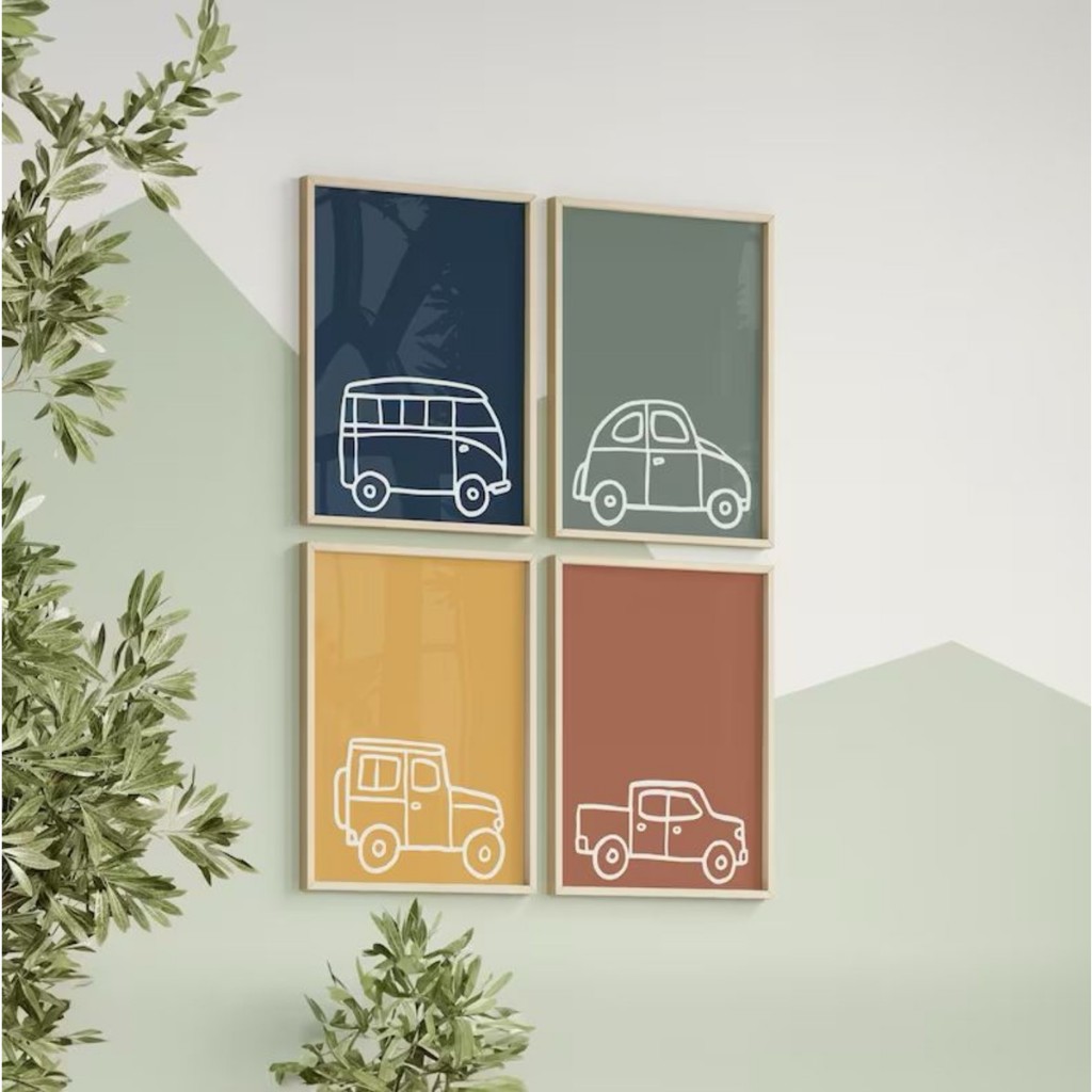 Quadro de decoração para quarto de menino - para quarto de bebê - carros - desenho de carros - kit com 4 peças 30x20