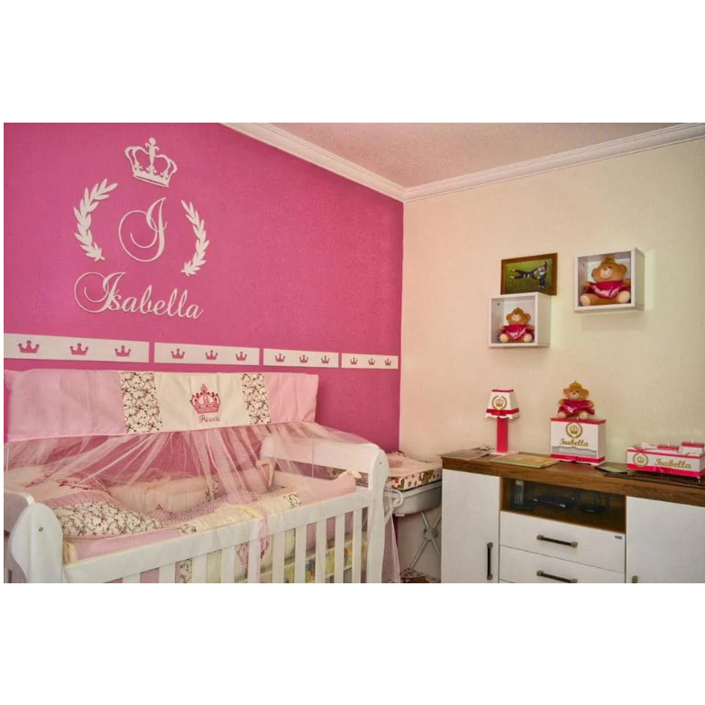 Kit Provencial para decoração quarto de menina menino Coroa nome inteiro Personalizado em MDF DV_0456