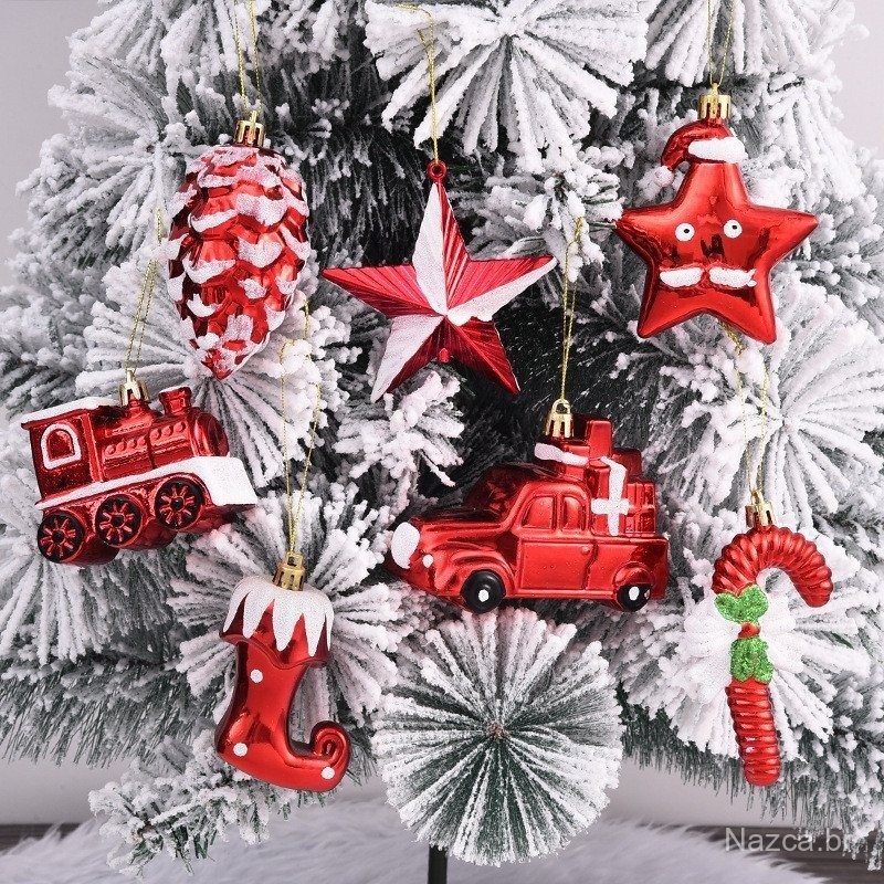 JIONS 24PCS Pintura Decorativa De Natal Delicada Tema De Contraste E Árvore Brilhante Pendentes Decorativos Bolas Ornamentos Set-24Pieces