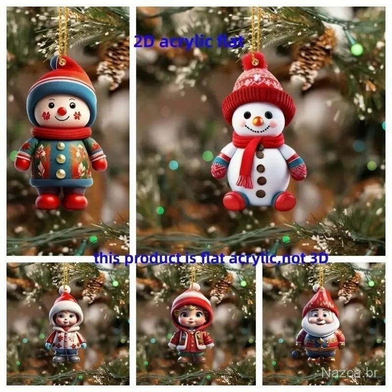 JIONS Decoração de Natal. Pingente de figura 2D, material acrílico, decoração de parede, pingente de Papai Noel, enfeites de festa festiva