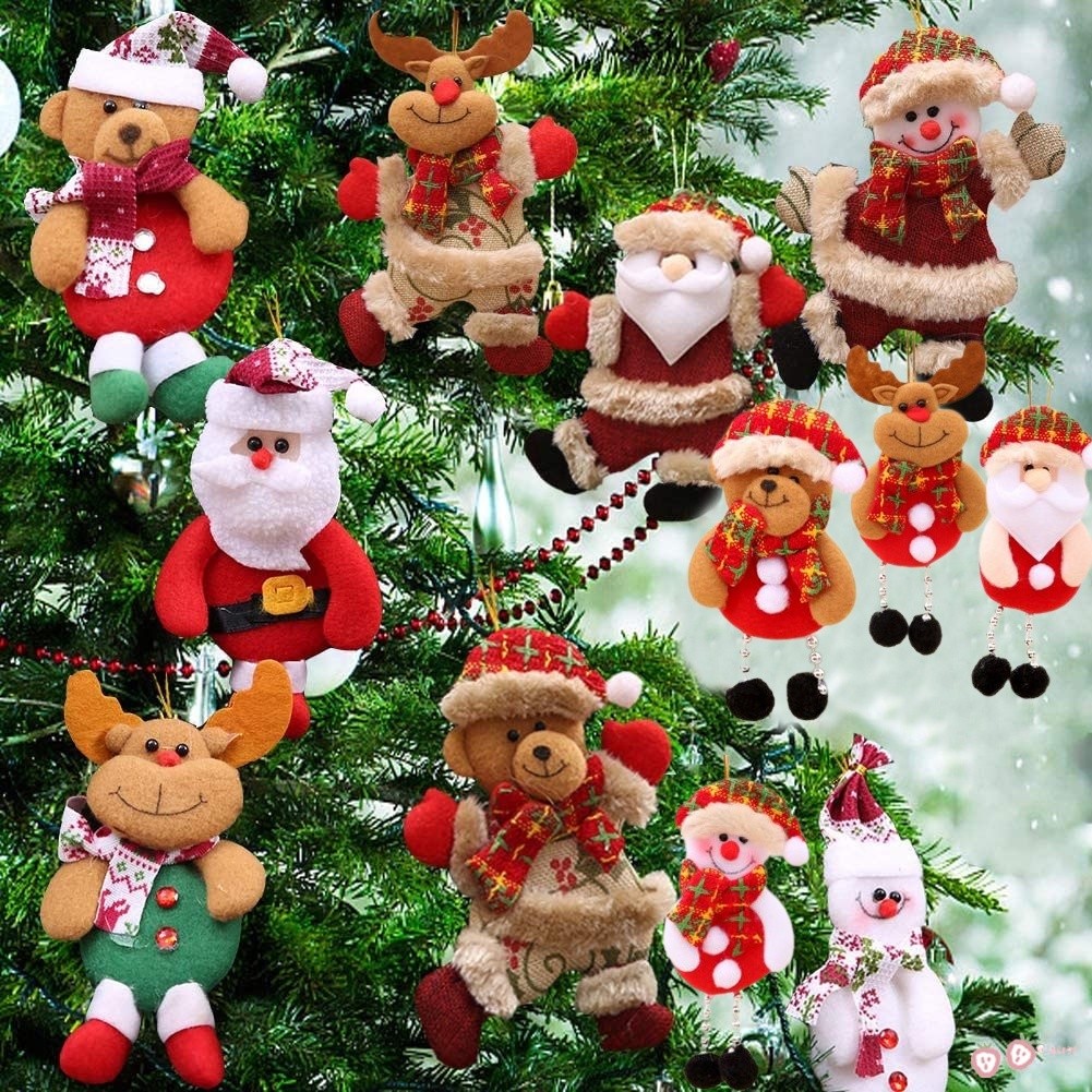 JIONS 2024 Enfeites de Natal para Nova Árvore Decorativa Pingente de Natal Dança Velho Boneca Neve Veados Urso Tecido Para Decoração de Casa Papai Noel/Ornamentos