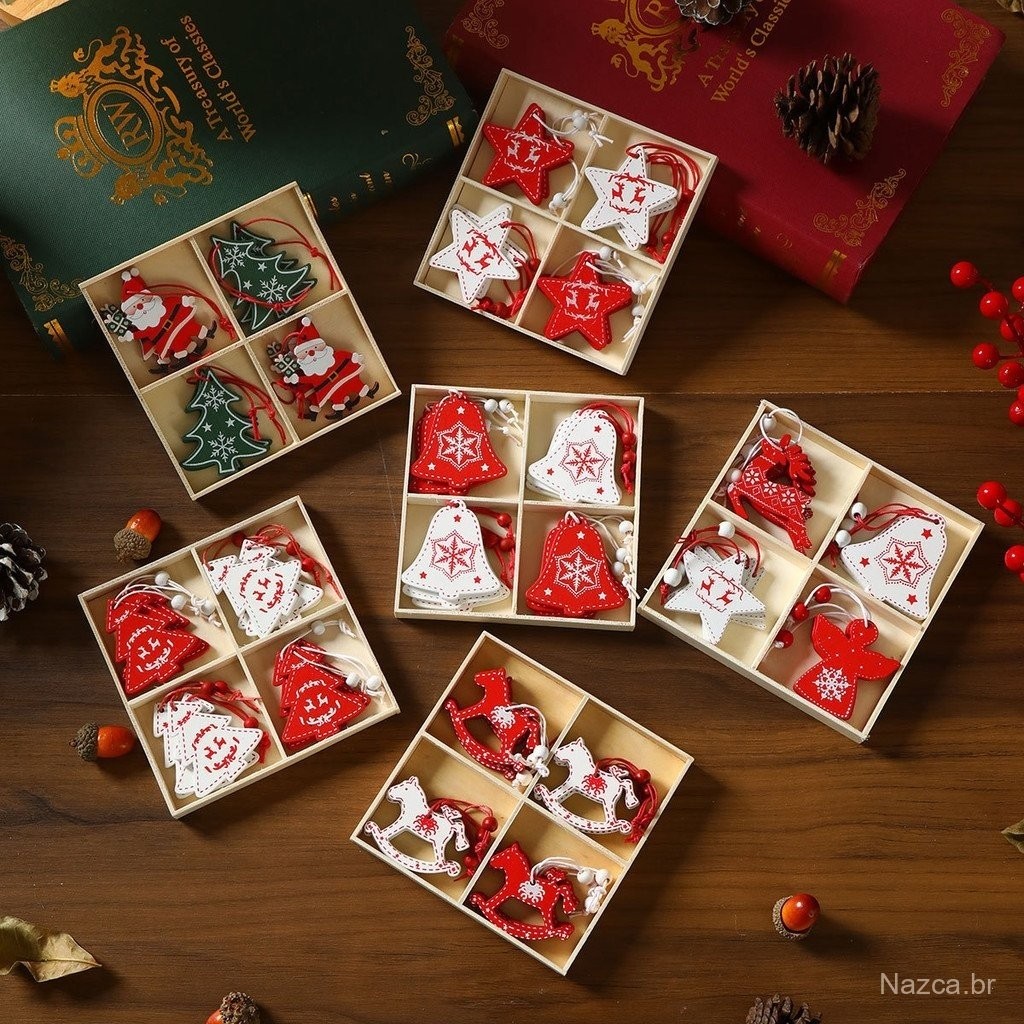 JIONS , Caixa de presente de Natal decoração de madeira árvore de Natal de madeira, Natal Natal, pequenos pingentes decorativos