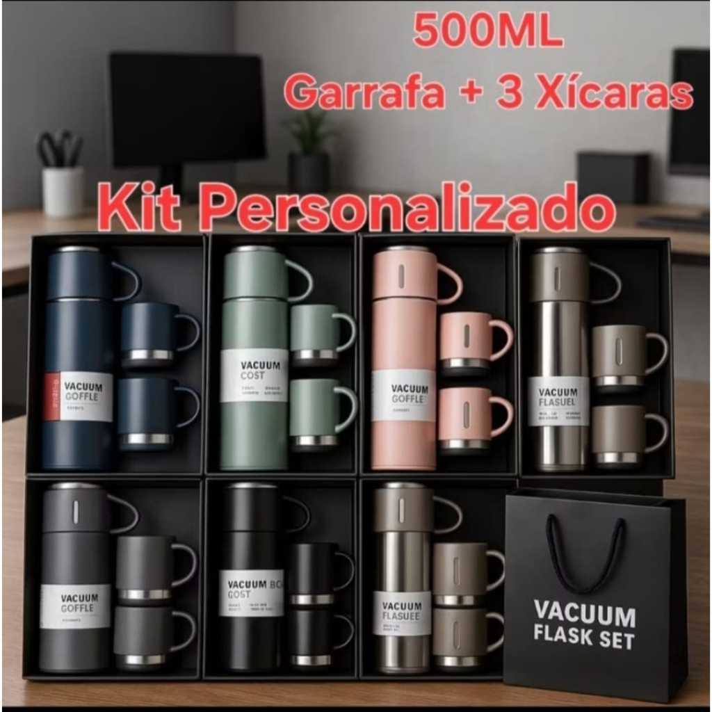 Kit 20 Unidades Kit garrafa + 3 Xícaras Personalizados 500ML Squeeze Térmica Bebida quente e fria 10-20 Unidades