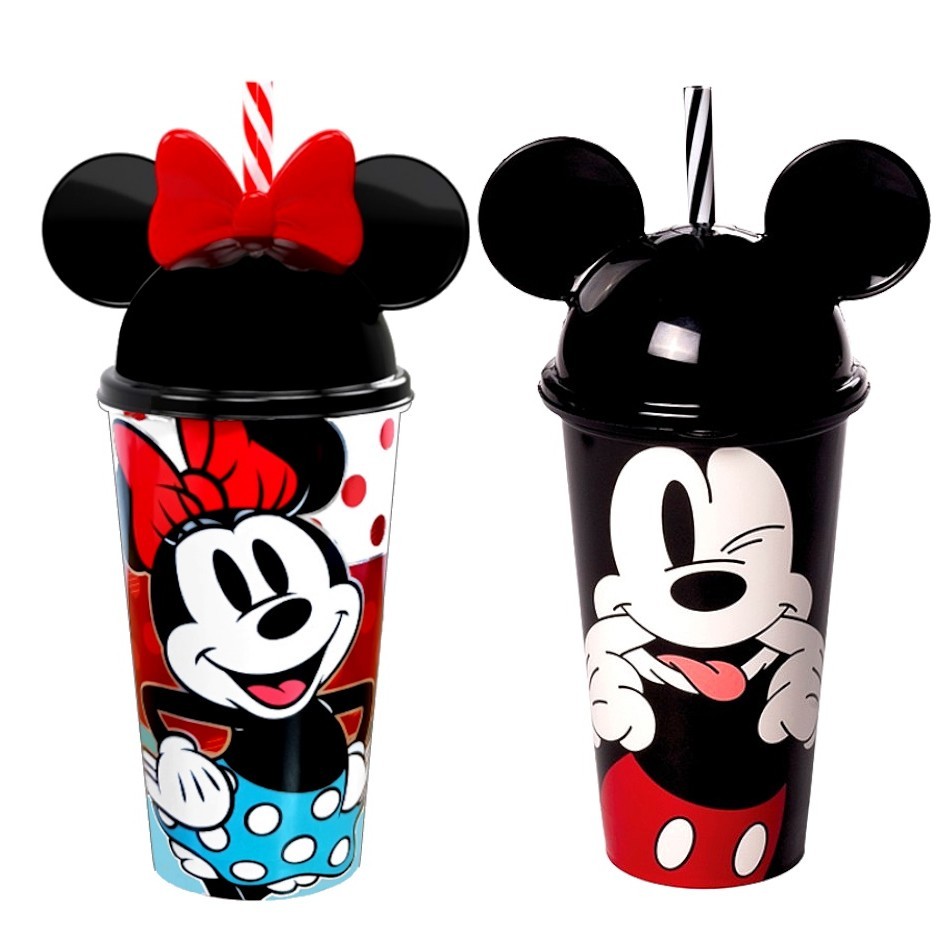 Kit Copos Shake do Mickey e Minnie Mouse com Orelhas Tampa e Canudo 500ML