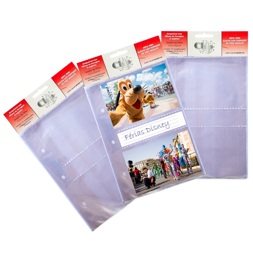 3 pacotes de refis para 10x15/40 fotos = total 10x15/120 fotos fichario ou ferragem de 3 argolas 7cm entre furos