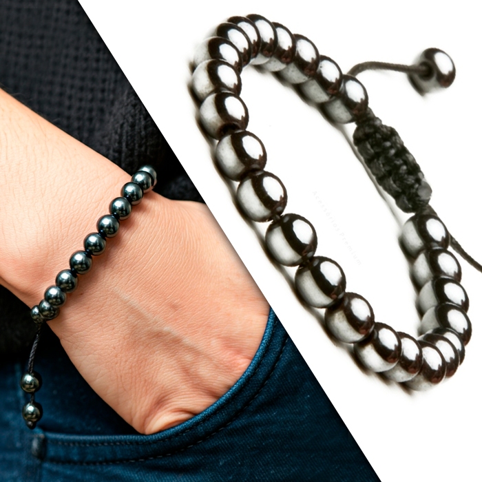 Pulseira de Pedra Hematita SANTAMORE com Fecho Ajustável em Macramê Unissex