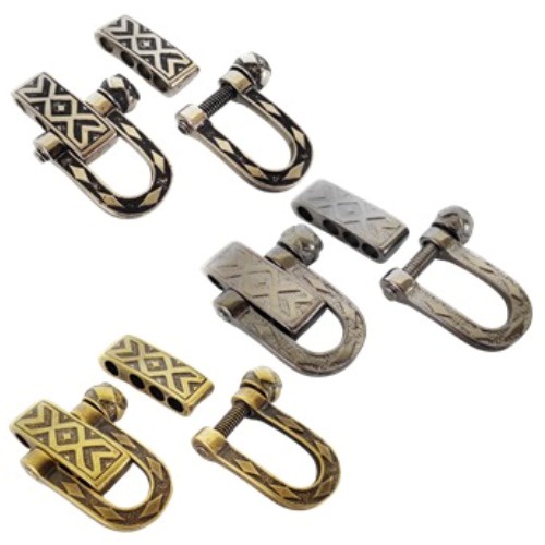 Fecho Manilha Ajustável com 3 Furos de ajuste com parafuso Pulseira Bracelete Metal Grafite Níquel Ouro Velho 21G 21N 21O