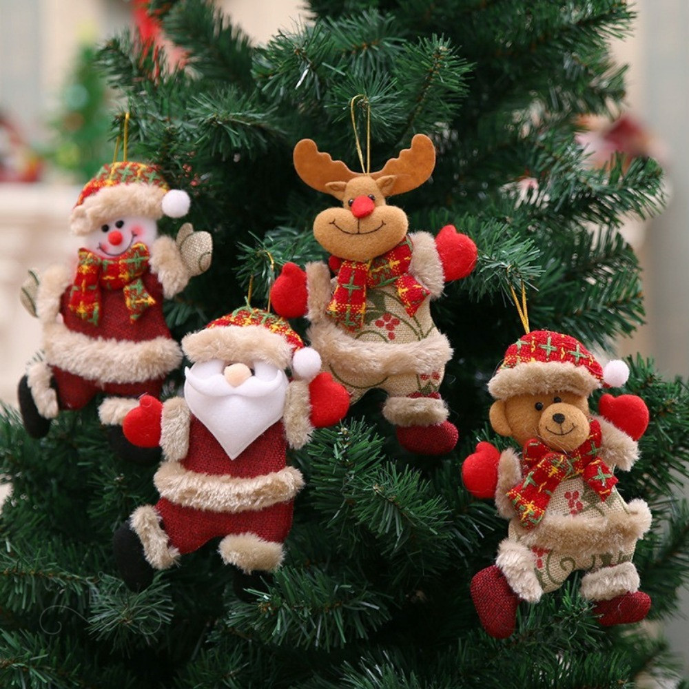JIONS 2024 Enfeites de Natal para Nova Árvore Decorativa Pingente de Natal Dança Velho Boneca Neve Veados Urso Tecido Para Decoração de Casa Papai Noel/Ornamentos