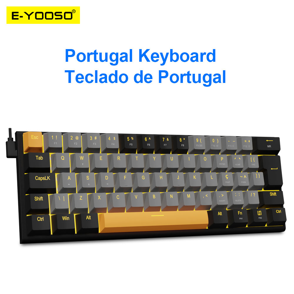 E-YOOSO ABNT Z11 USB Teclado Mecânico De Jogo Com Fio Interruptor Vermelho 61 Teclas Gamer Russo Português Brasileiro Para Computador PC Portátil
