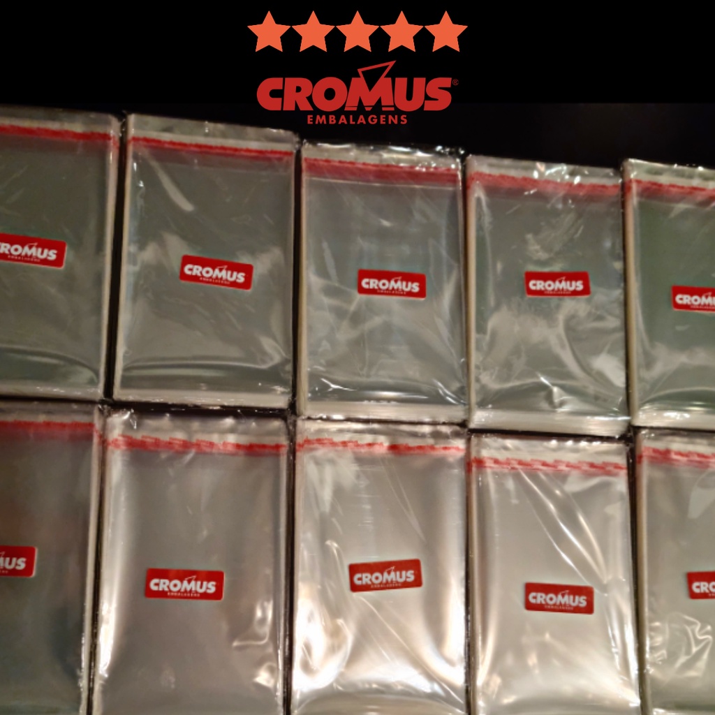 Kit 100 Sacos Plástico Com Adesivo Marca Cromus Vários Tamanhos 10x15 / 22x30 / 28x38 Sacola Embalagem Filme Adesivada