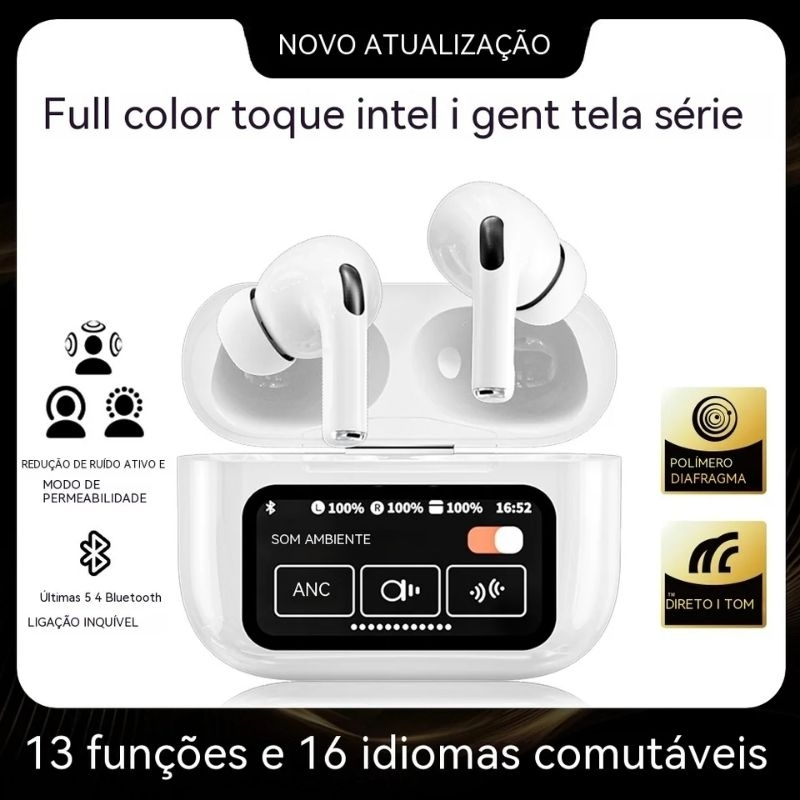 2024 Novo A9 Pro Touch Screen ANC Fones De Ouvido Bluetooth Suporta Múltiplos Idiomas 5.4
