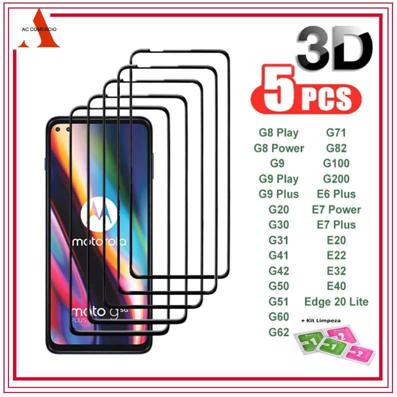 Kit Película 3D de Vidro Atacado com 5 peça Moto G13 G14 G23 G22 G53 G31 G41 G71 G32 G42 G52 G54 G62 G72 G73 G82 G84 G10 G20 G30 G50 G60 G60s