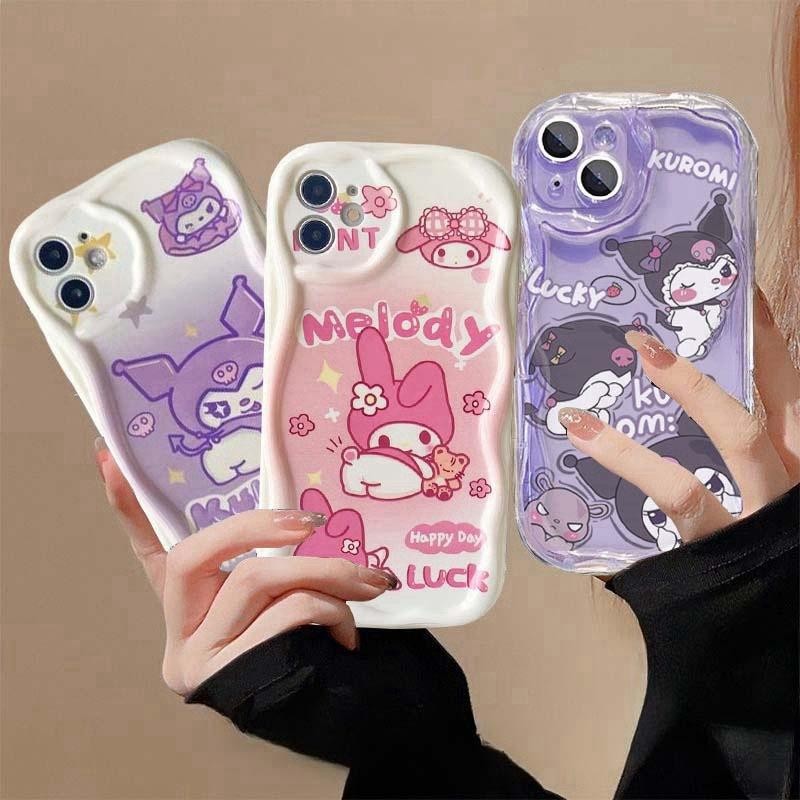Caixa De Desenho Animado sanrio Compatível Para iPhone XS Max XR X 8 7 6 6S Plus SE 2020 Padrão De Onda Fofa Kuromi melody Proteção À Prova De Choque Capa Traseira Completa
