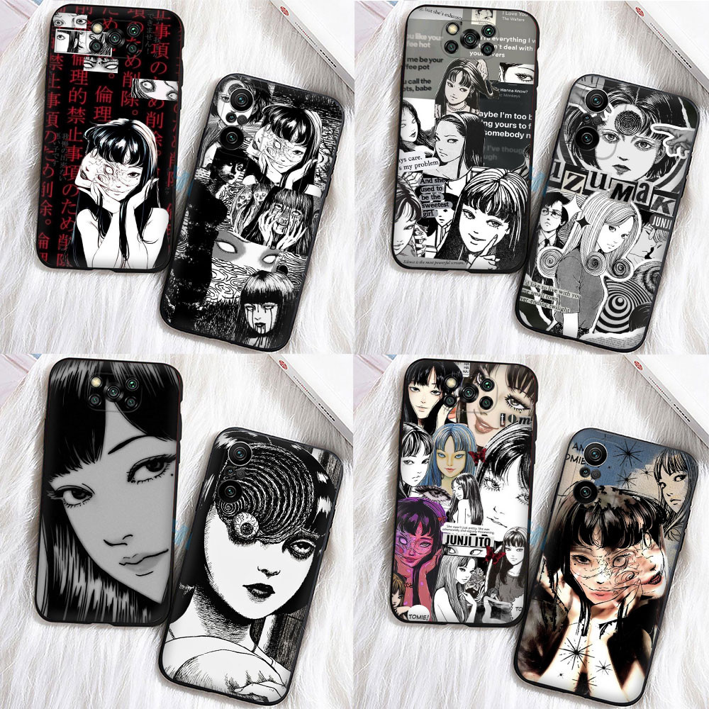 POCO X7 C75 X6 X5 X3 F5 F4 Pro GT NFC M7 F7 4G 5G 240306 Capa De Telefone Macia Preta Junji Ito Tomie Anime