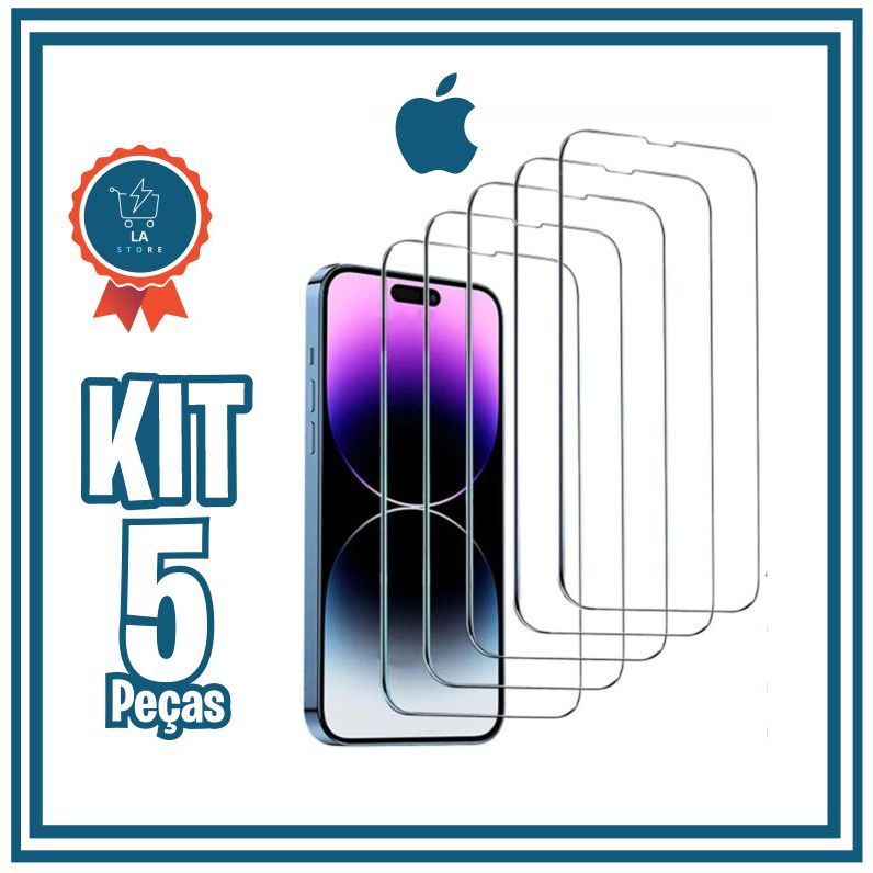 KIT com 5 Pelicula de Vidro 3D/9D IPhone 11 15 Pro Max 14 11 XR 6 7 8 10 12 7 plus 7+ 8+ 8plus 13 14 pro Max