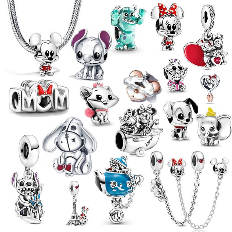 2023 Novo Berloque Prata 925 Cartoon animal Minnie Winnie Bracelete Charms Para Pulseira Bracelete Pingentes