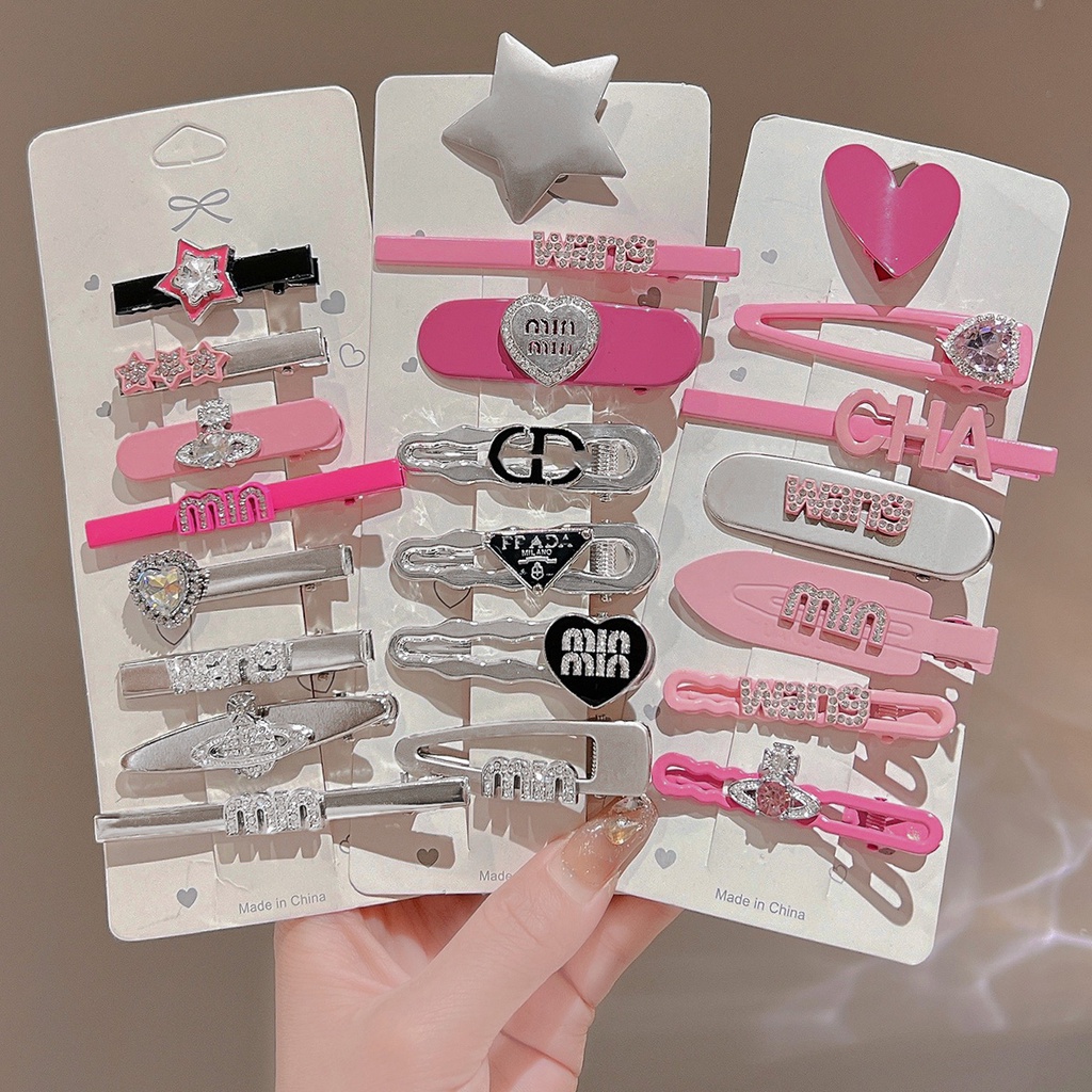 Prata Metal Rhinestone Cinco pontas Star Hair Clip Fêmea 2023 Novo Estilo Pink Love Bangs Clip Cabeleireiro Duckbill Clip