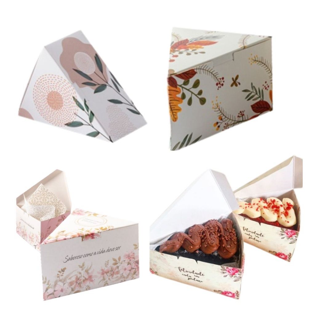 Embalagem para Fatia de Bolo com papel, torta ou sobremesas triangular - Pct 25un