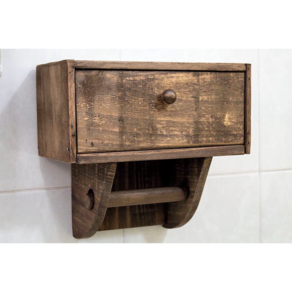 Caixa baú para papel higiênico espaço para 3 rolos reserva e 1 no suporte armário para banheiro vintage NÃO É MDF É MADEIRA DE VERDADE