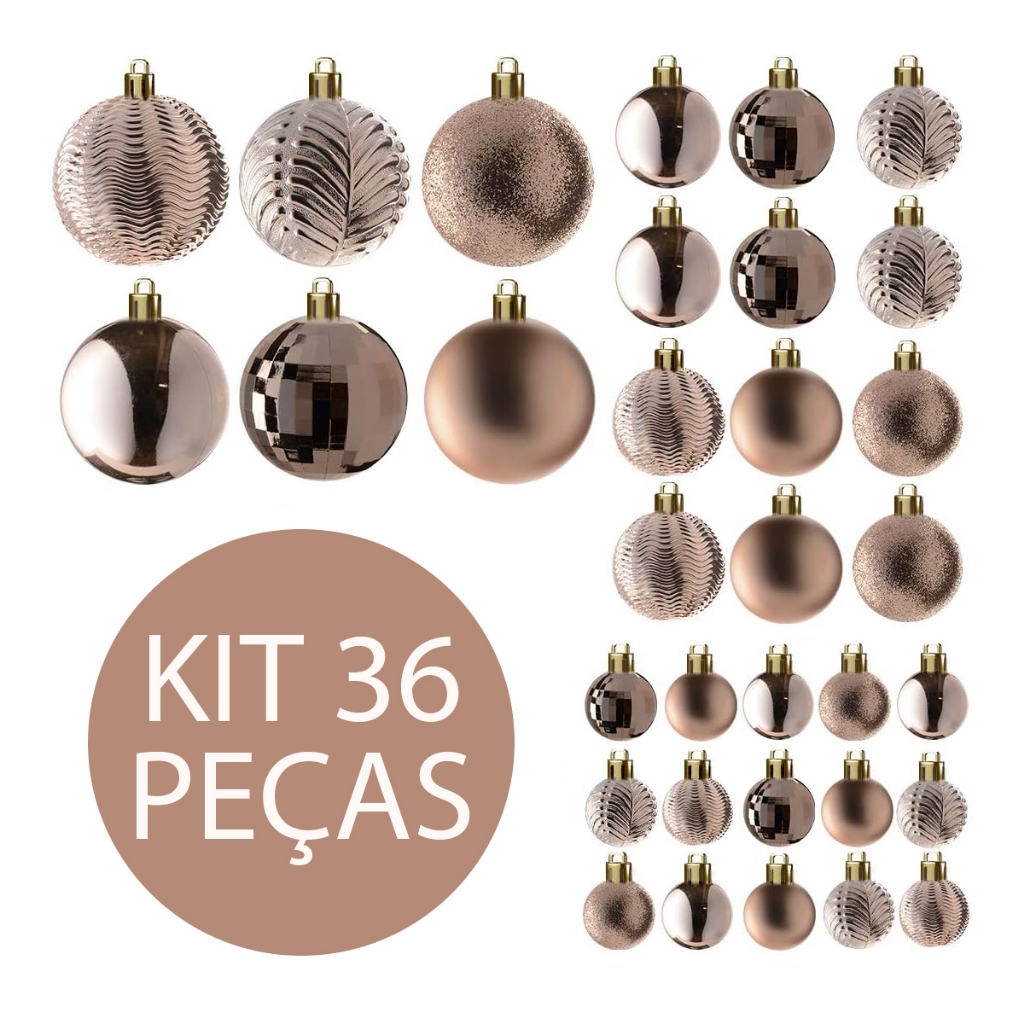 Kit 36 Bolas Enfeite De Árvore De Natal Bolinhas Mista Lisa Fosca Glitter Para Decoração Natalina
