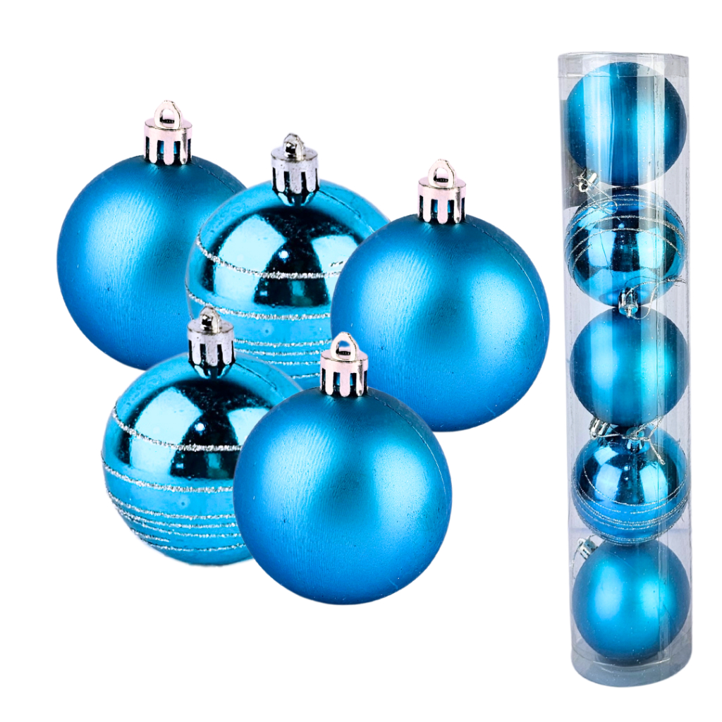 Kit Bola de Natal Decorada tamanho 8cm Azul Claro