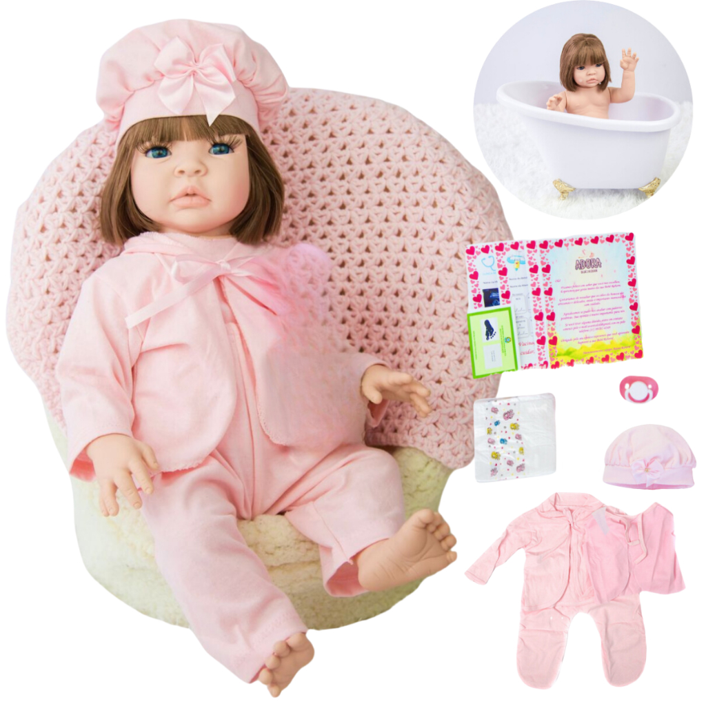 Boneca Bebê Reborn Silicone Realista Menina Com Kit e Roupinha Pode dar Banho