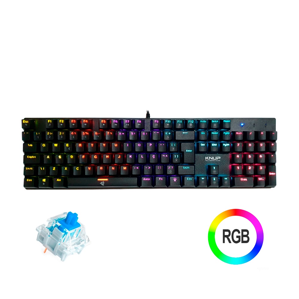 Teclado Mecânico Gamer RGB Switch Blue ABNT2 Knup KP-TM010