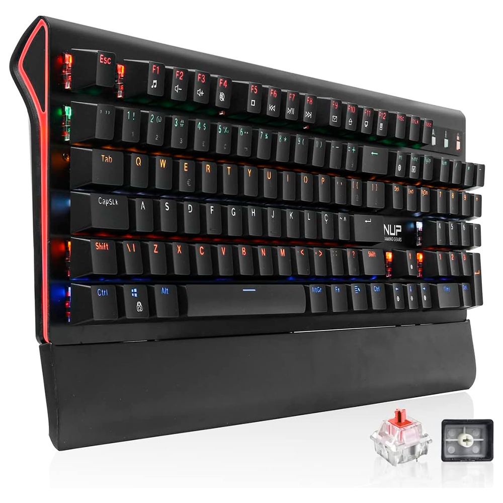 Teclado Mecânico Gamer Switch Red LED RGB ABNT2 com Apoio de Pulso Knup KP-TE121
